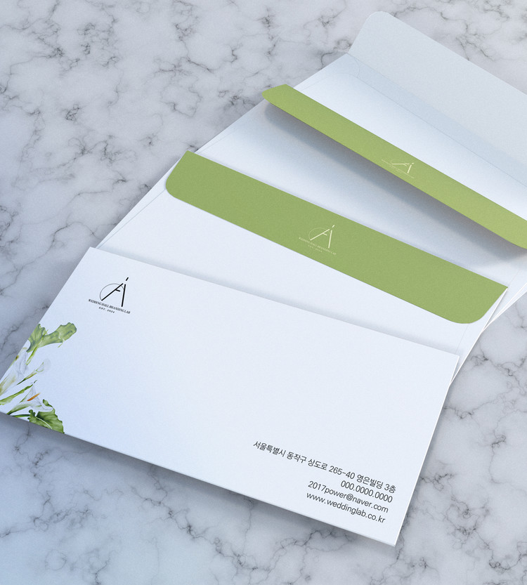 배치된 로고와 주소등의 정보는 절제된 폰트 스타일을 사용해 심플하면서도 고급스러운 이미지를 부각시킵니다.