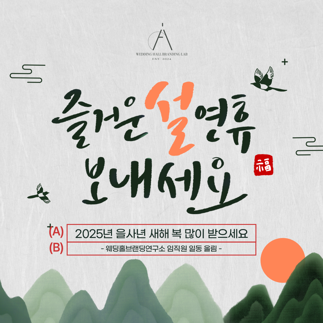 이 디자인은 따뜻하고 정겨운 감성을 담아 설 연휴를 축하하는 메시지를 전합니다.