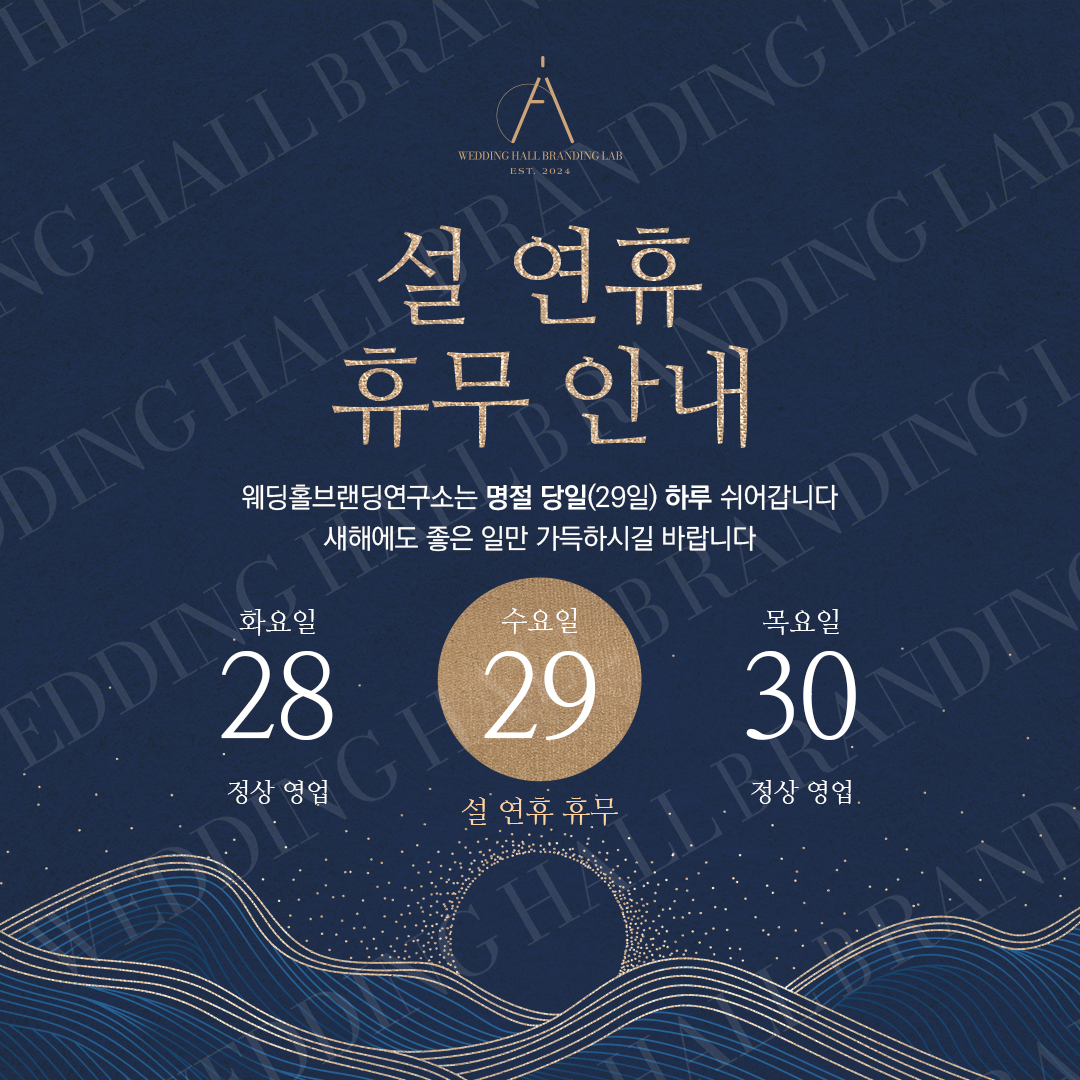 이 디자인은 설 명절 휴무 안내를 위한 고급스럽고 차분한 분위기를 전달합니다.