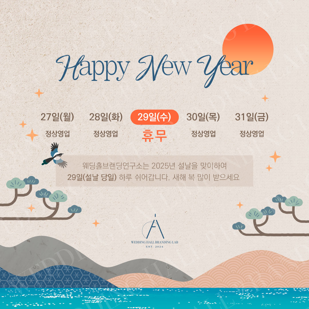 차분하고 세련된 새해 이미지와 설날 휴무를 안내드립니다.
