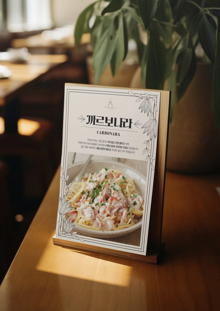이 디자인은 단순한 메뉴 소개를 넘어, 음식이 가진 감성과 따뜻한 분위기를 함께 전달합니다.