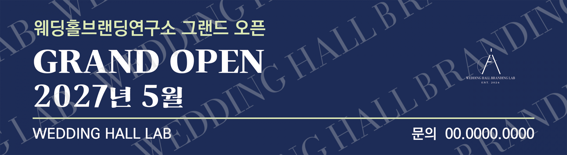 또한, 굵고 힘 있는 서체로 강조된 'GRAND OPEN' 문구는 웨딩홀의 오픈을 강렬하게 각인시키며,