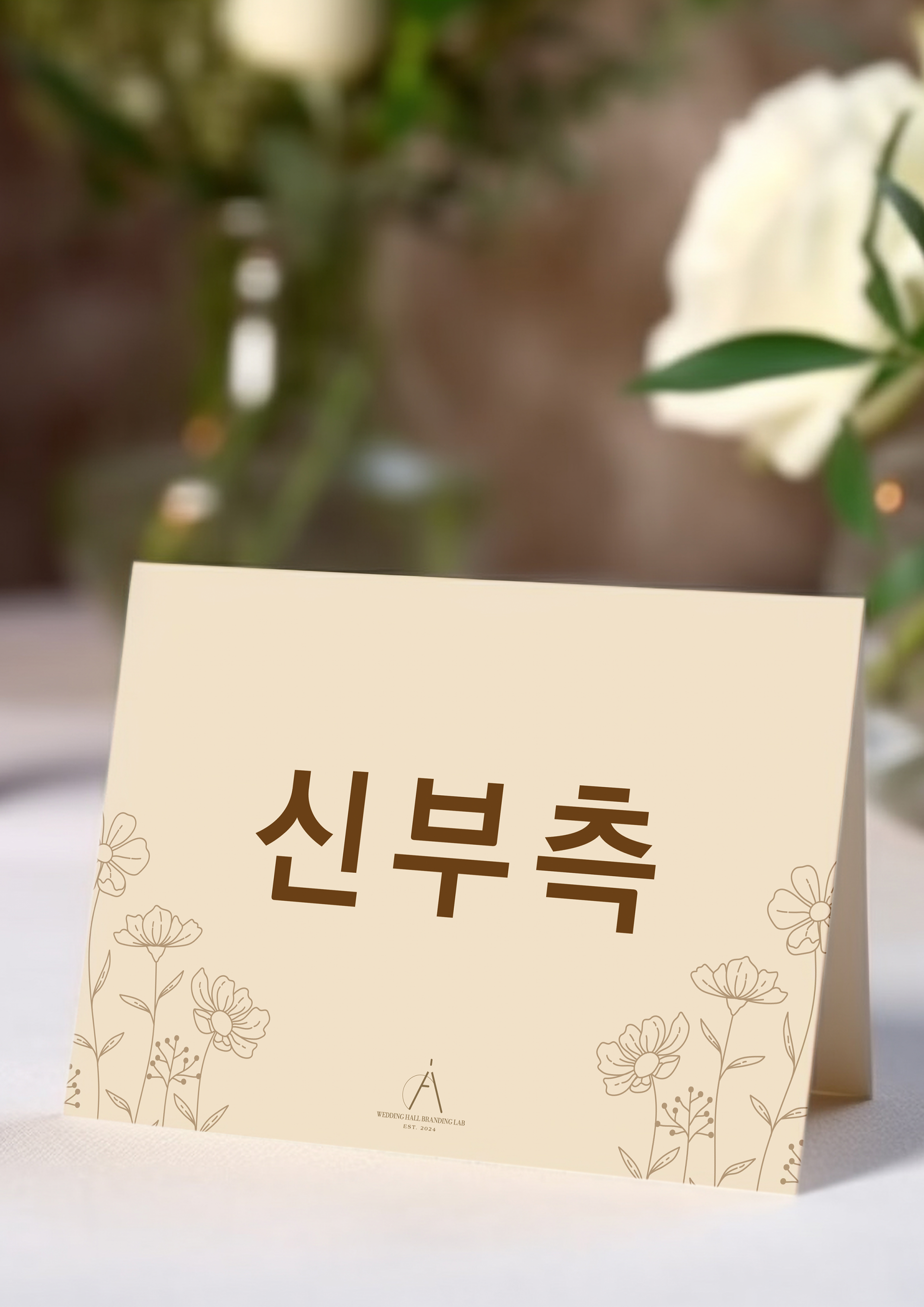 좌우로 은은하게 배치된 선으로 그려진 꽃들은 우아하면서도 자연스러운 아름다움을 더해주며, 웨딩의 따뜻한 순간을 한 폭의 그림처럼 담아냅니다.