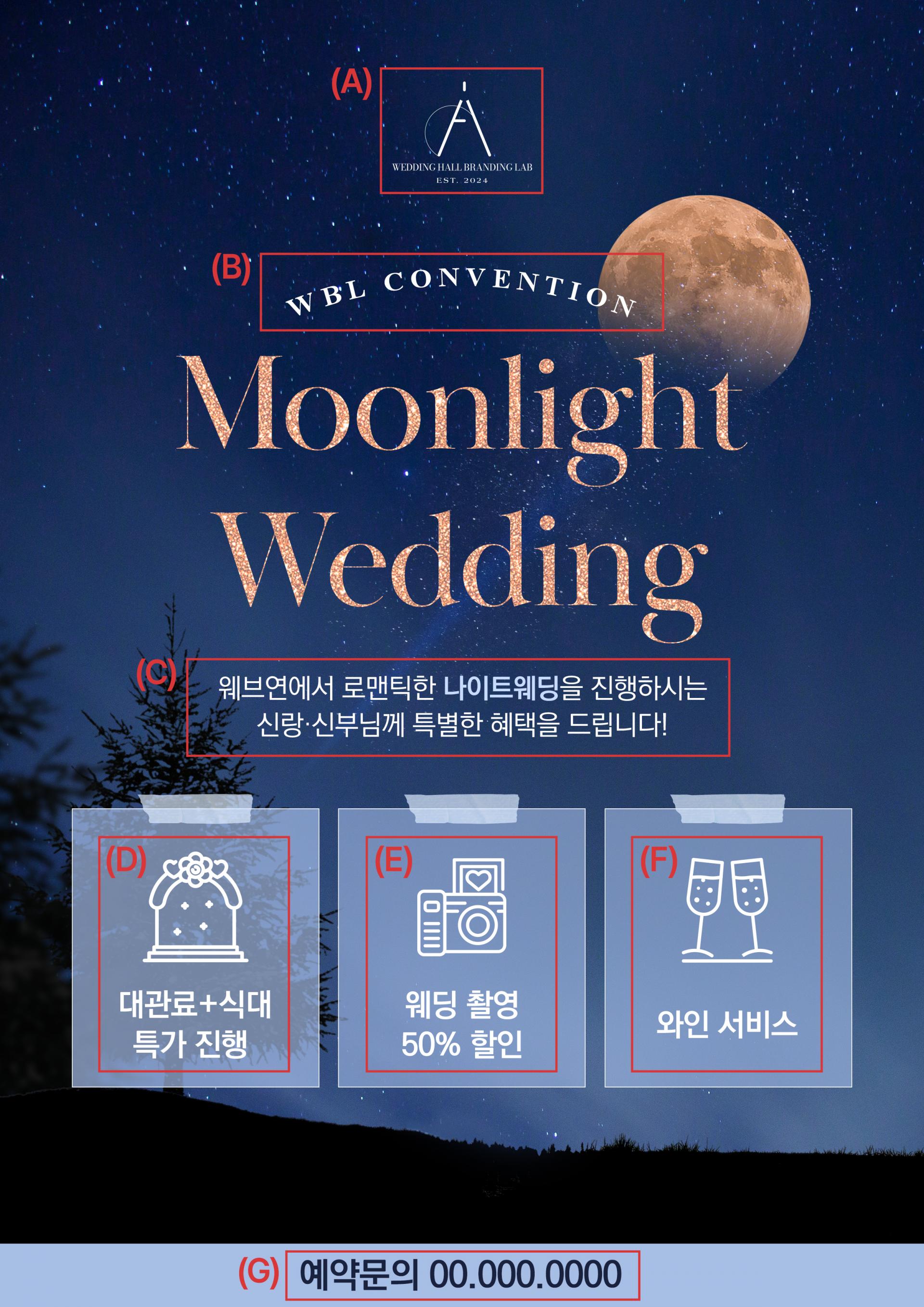 '문라이트 웨딩'이라는 이름에 걸맞게 신비롭고 낭만적인 분위기를 완성합니다.