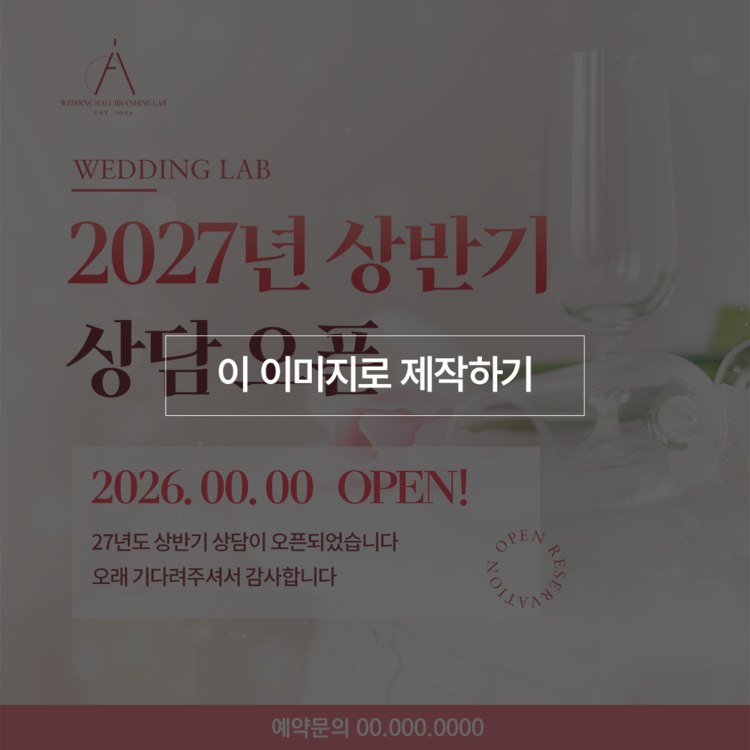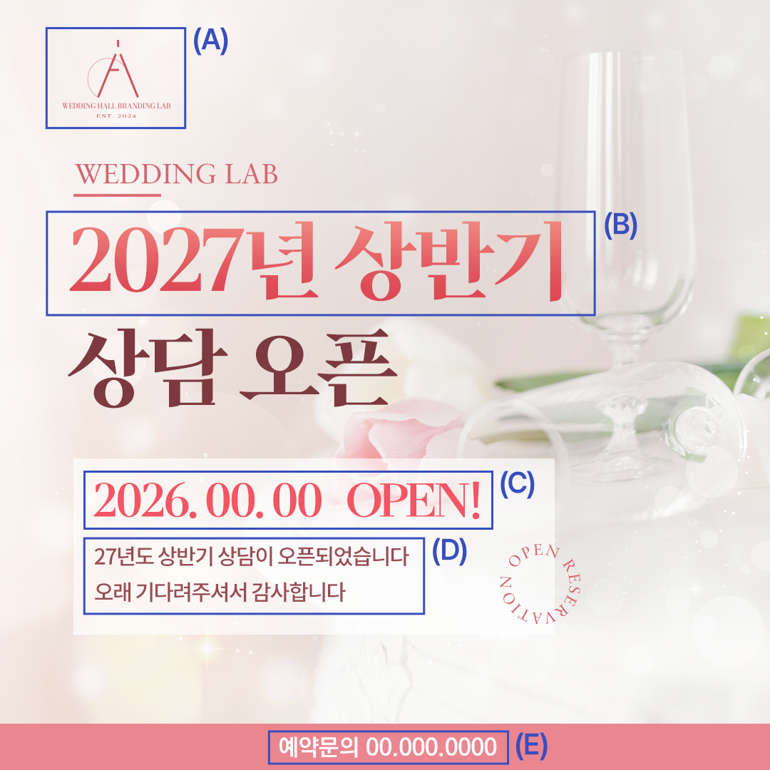 새로운 웨딩 시즌의 시작을 정갈하면서도 따뜻하게 전하는 담백한 상담 오픈 디자인입니다.