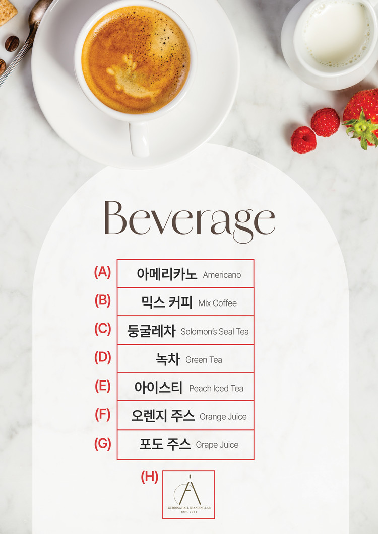 베버리지 메뉴 안내 디자인입니다.