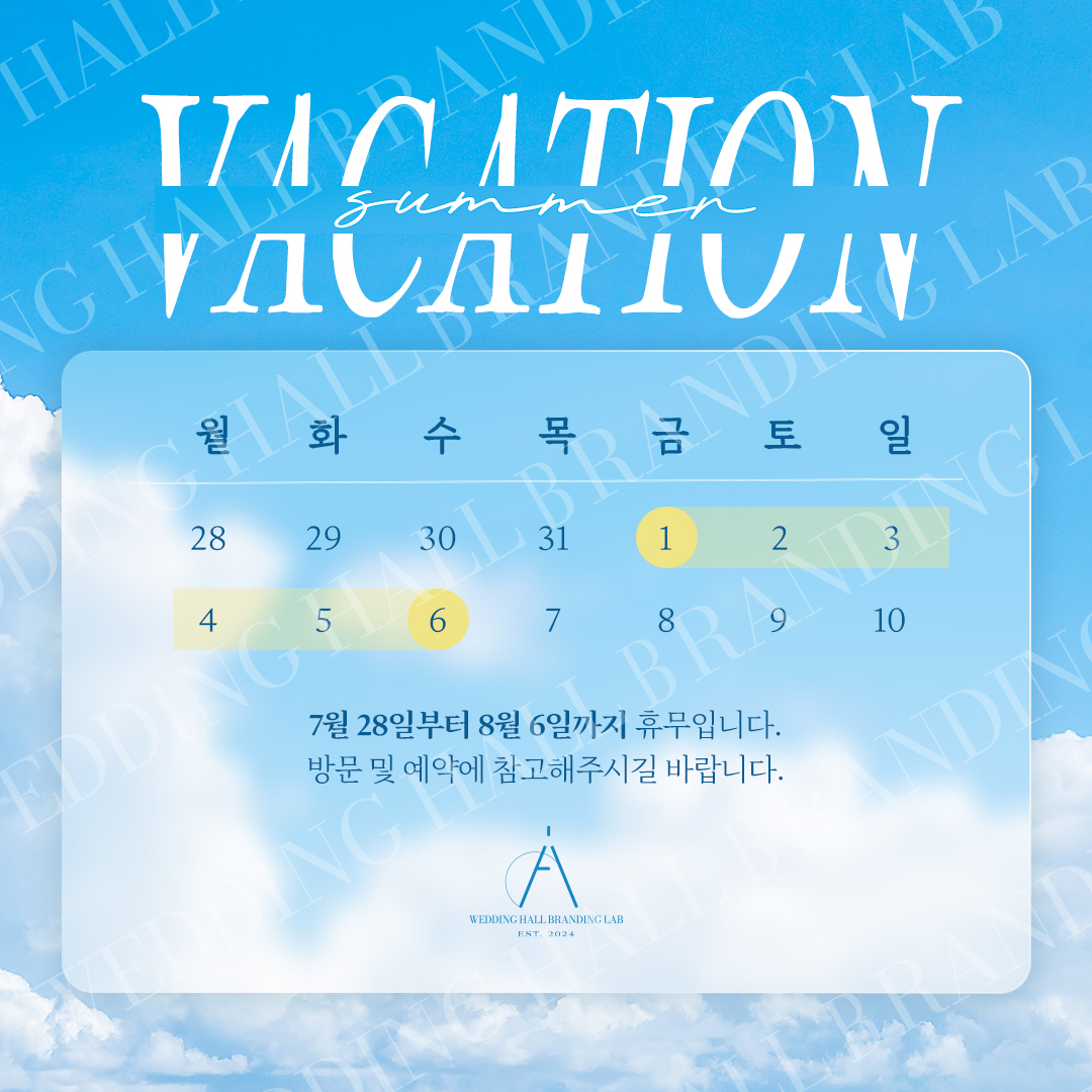 맑고 청명한 하늘을 배경으로, 여유와 설렘이 느껴지는 휴가 안내 디자인입니다.