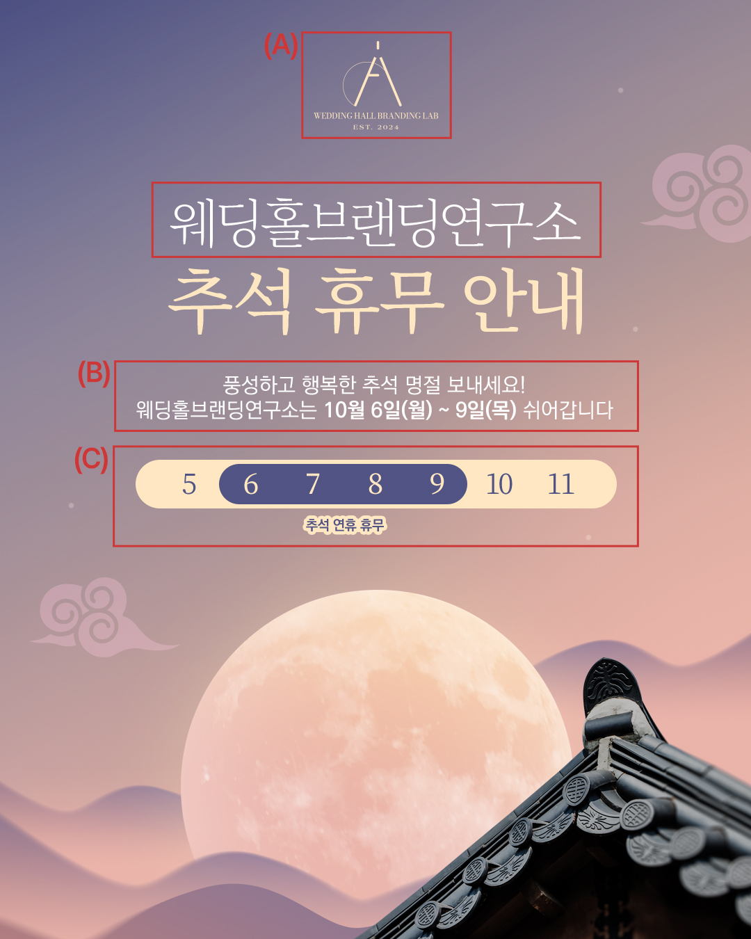 이 디자인은 단순한 휴무 안내를 넘어, 풍성한 한가위의 따뜻한 마음을 담아내며