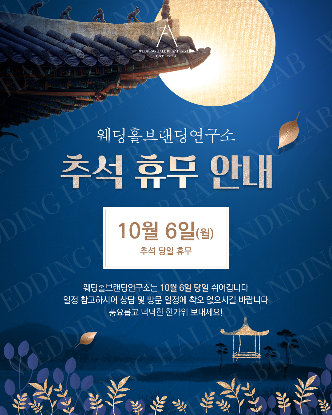 휴무 안내라는 메시지 속에서도 따뜻한 추석의 온기와 정서를 놓치지 않은, 감성적이고 담백한 디자인입니다.