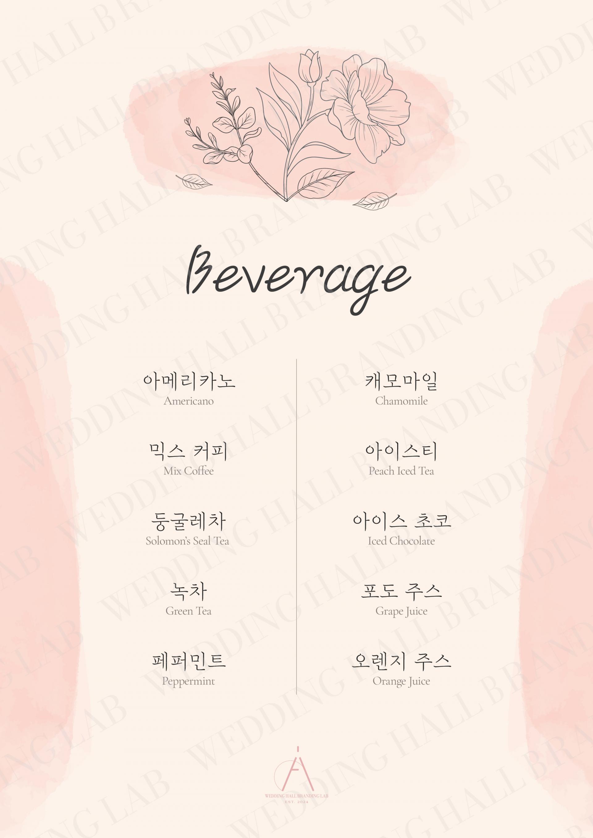 화려하지 않지만 담백한 꽃 일러스트가 차분히 중심을 잡아주어, 웨딩홀의 고급스럽고 배려 깊은 분위기를 그대로 전해줍니다.