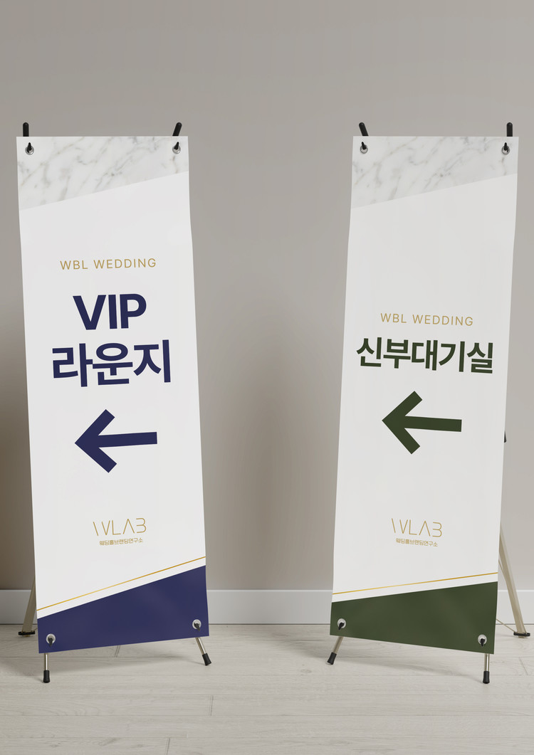이 X배너 디자인은 세련된 화이트 마블 패턴과 딥 네이비 컬러의 대조를 통해 고급스러운 웨딩홀의 분위기를 전달합니다.