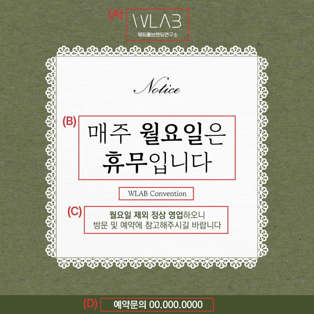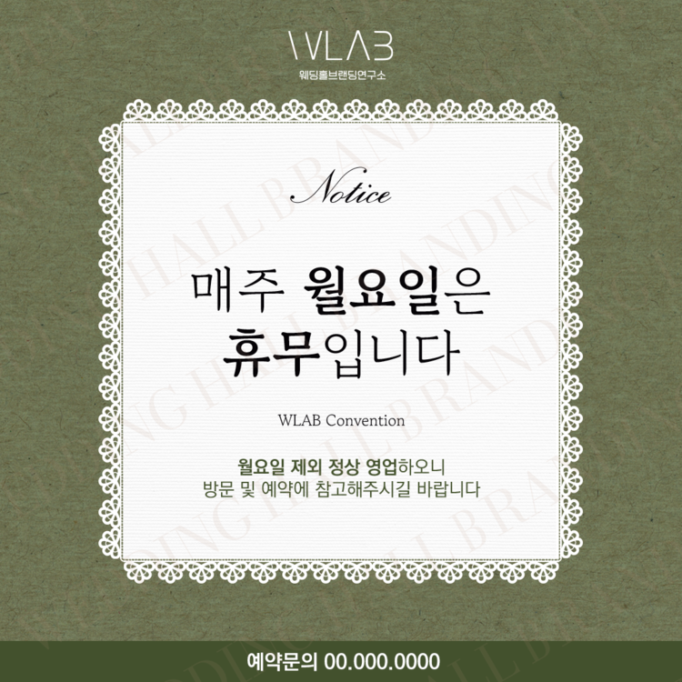 잔잔한 올리브 톤 위에 놓인 레이스 프레임이 따뜻한 감성을 더해주는 디자인입니다.