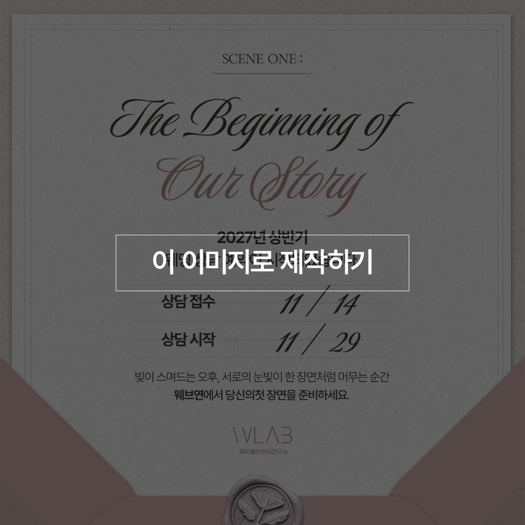 하단의 왁스씰 일러스트는 클래식한 분위기를 더해 신뢰감과 설렘을 동시에 전달합니다.