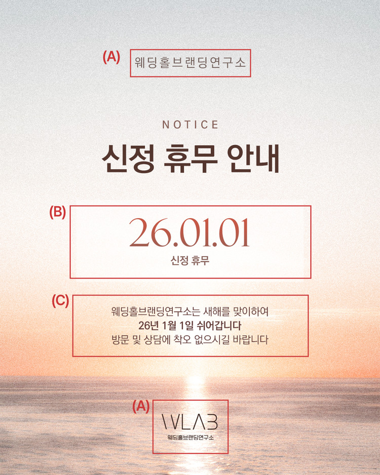 새해의 분위기를 은은하게 전하며 휴무를 알립니다.
