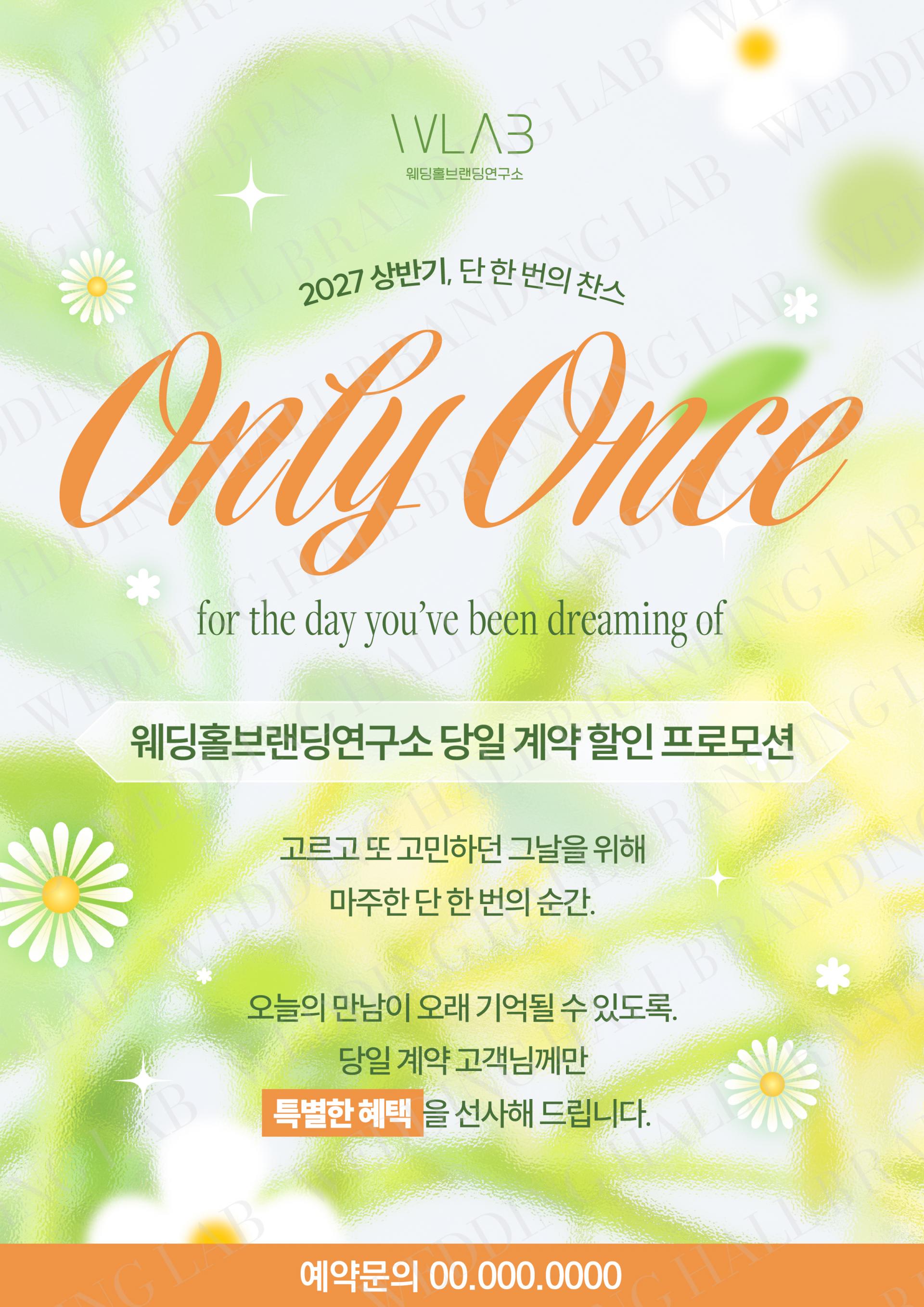 그린 톤 그래디언트 위에 데이지 플라워 일러스트를 더해 생기와 설렘을 담은 디자인으로,