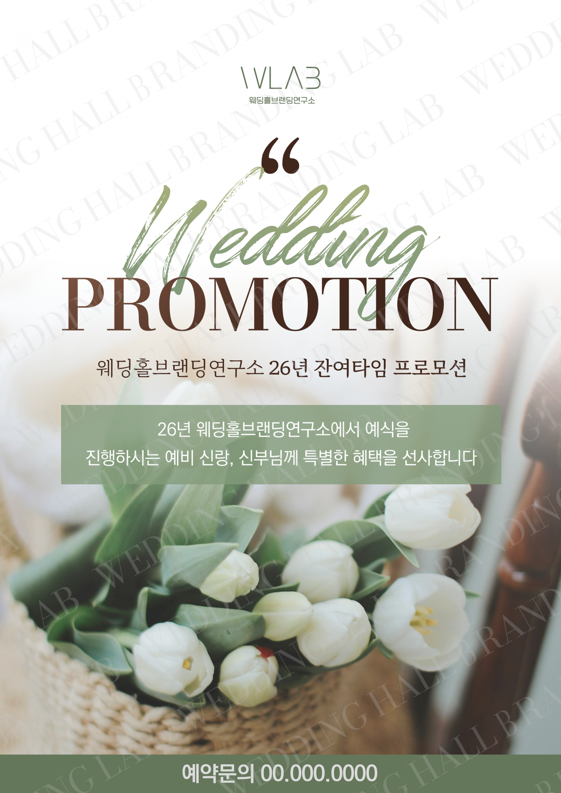 화이트 플라워와 내추럴 그린 컬러를 중심으로 구성된 디자인으로,