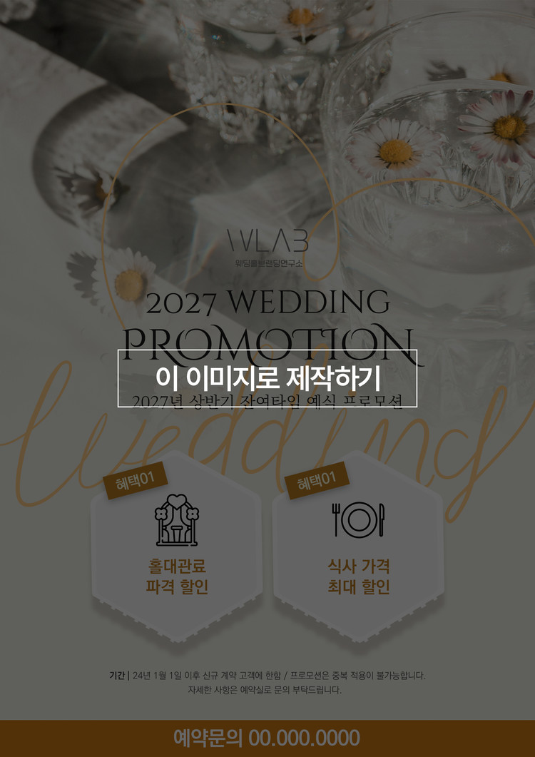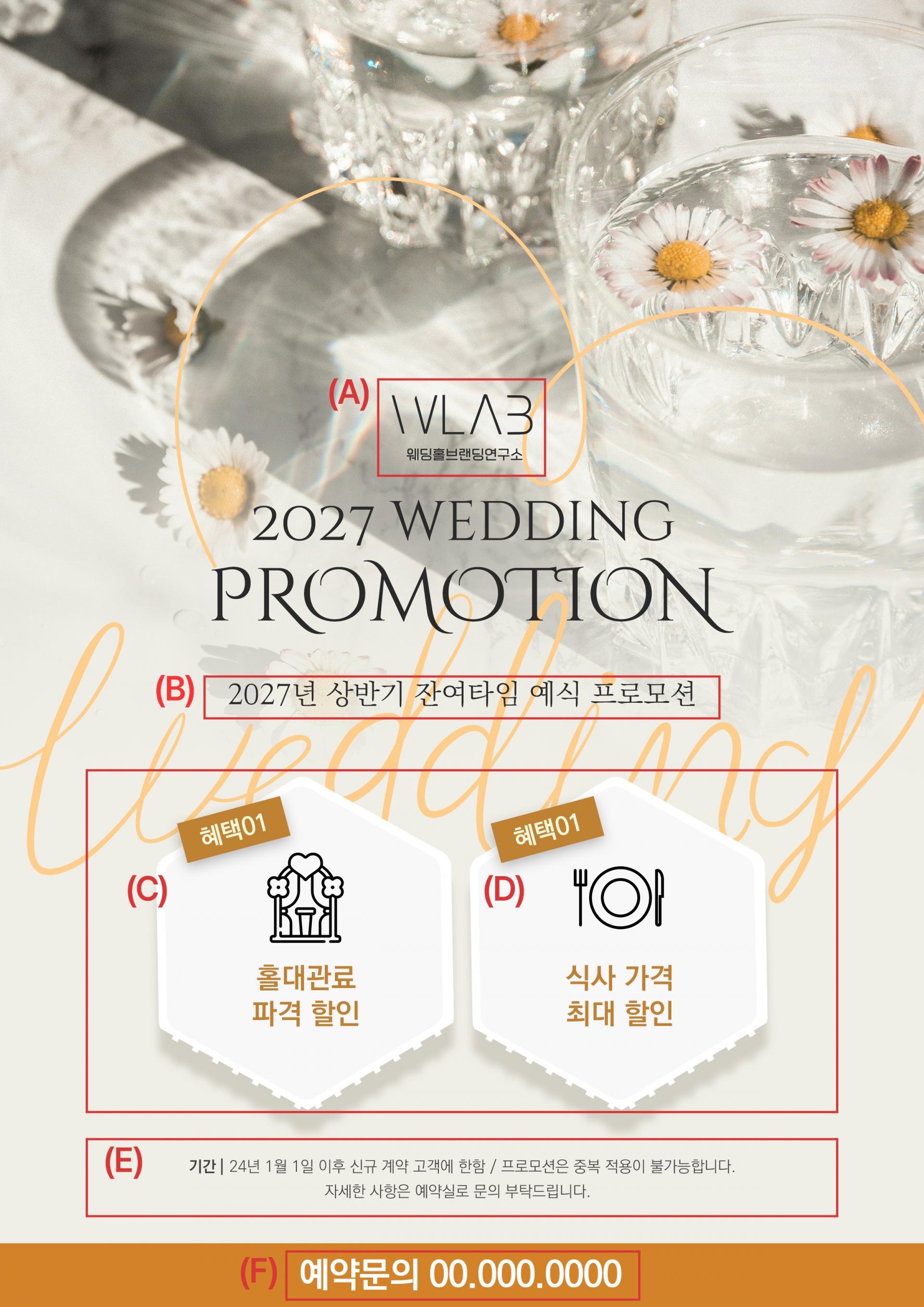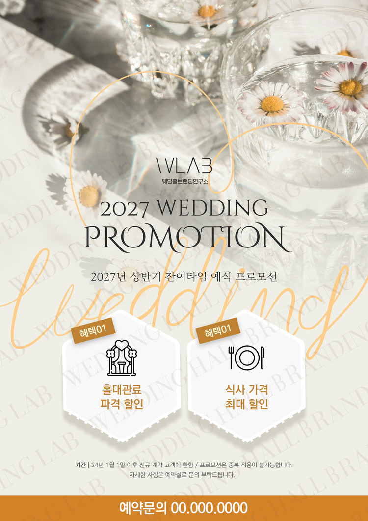 웨딩홀 브랜드 이미지에 어울리는 정제된 톤을 유지합니다.