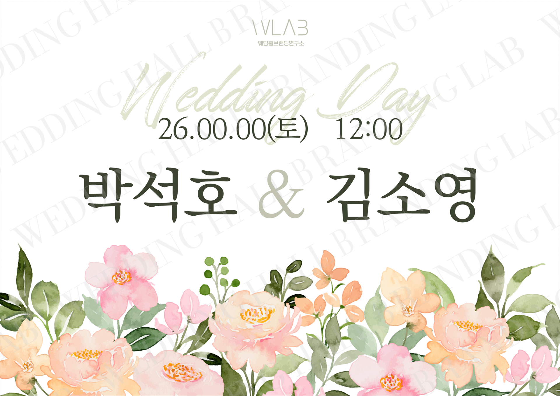 타이틀과 신랑·신부 이름은 가독성이 좋은 서체를 중심으로 구성하고,