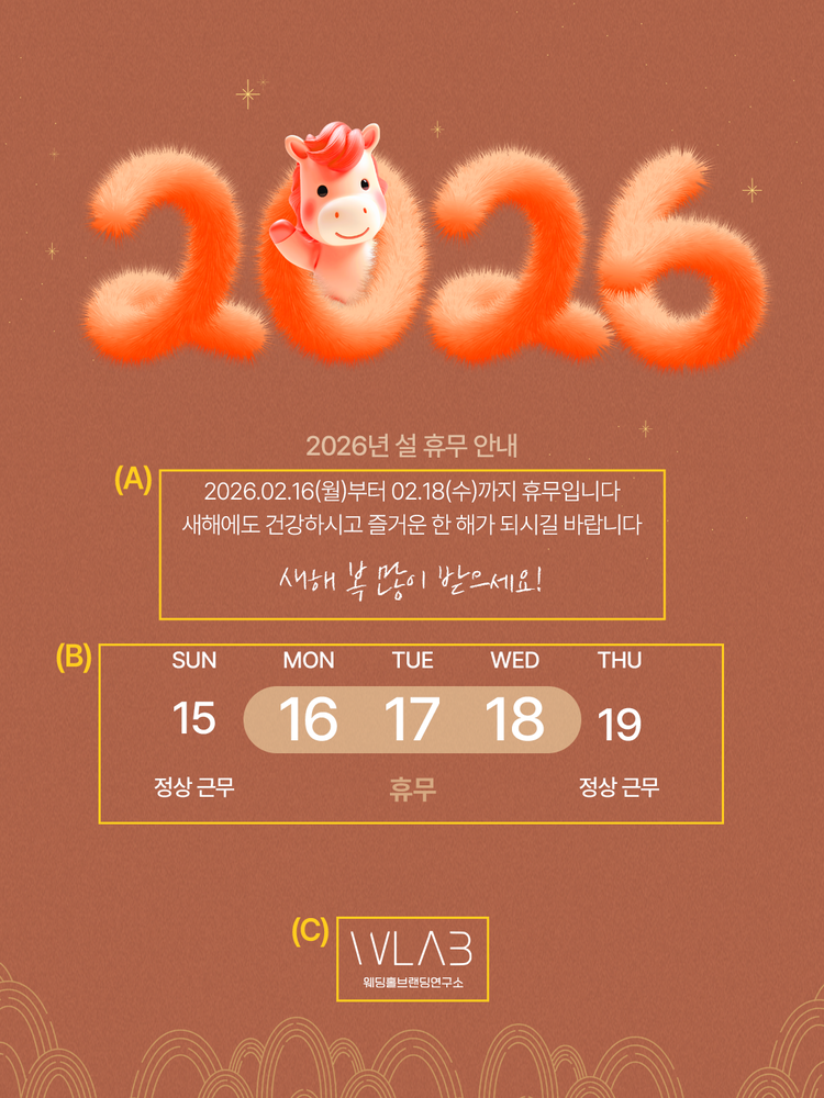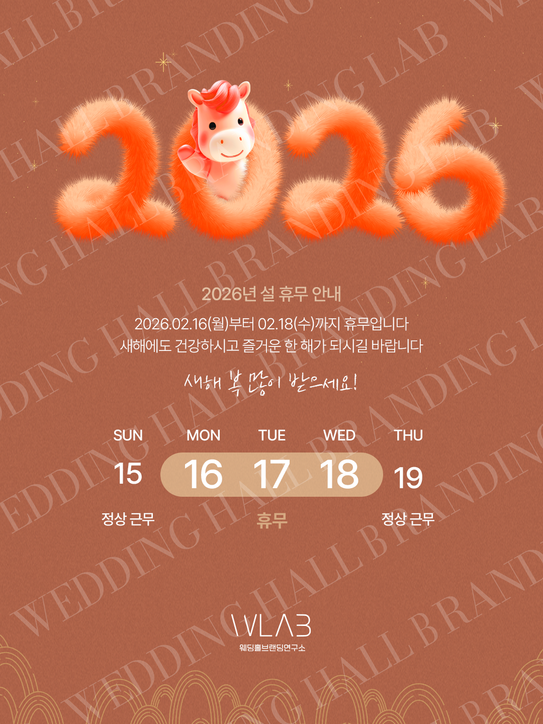 붉은 말의 해 2026년 설 휴무를 알리는 디자인입니다.