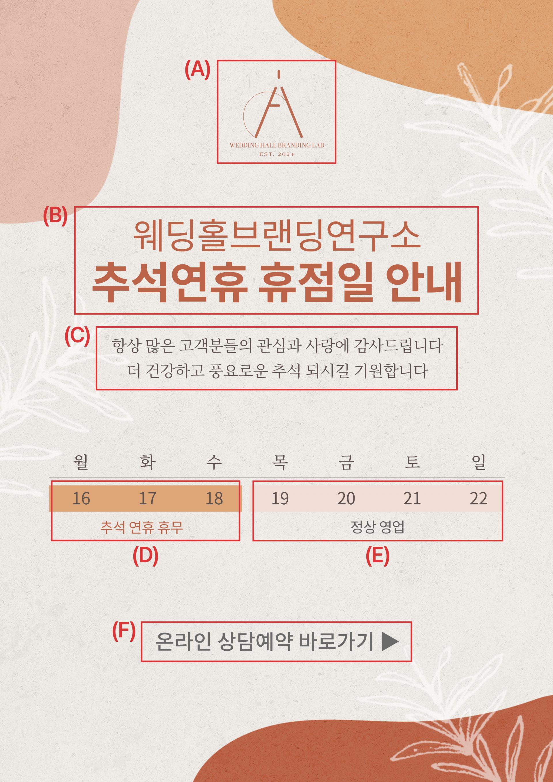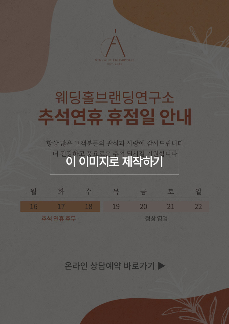 ex) 웨딩홀브랜딩연구소 / 추석연휴 휴점일 안