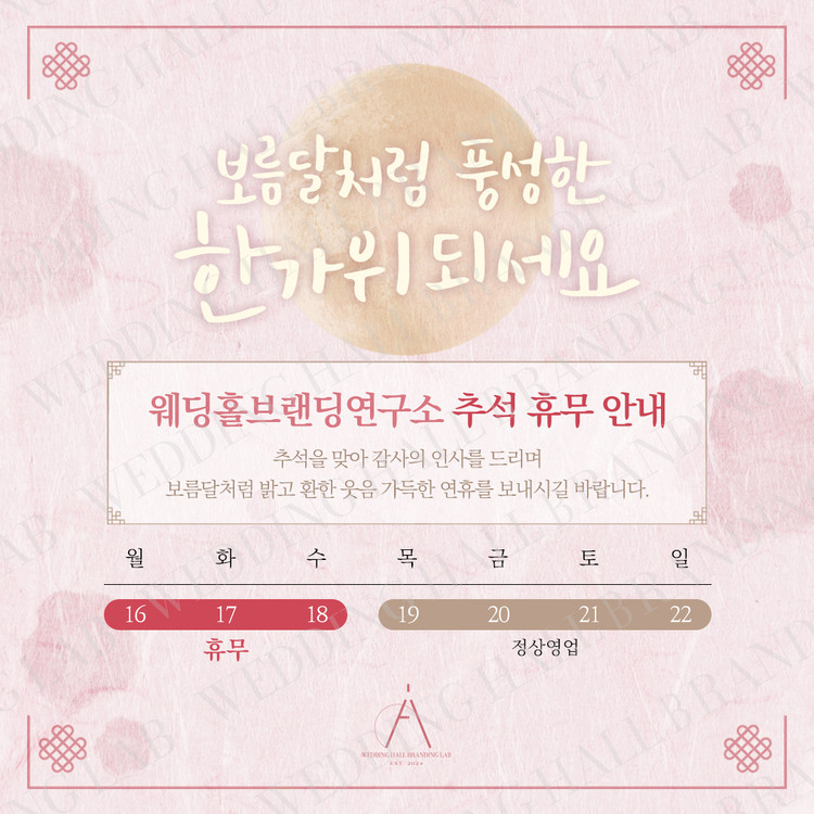 ex) 웨딩홀브랜딩연구소 추석 휴무 안
