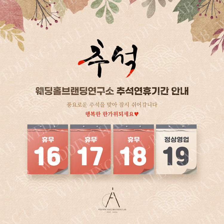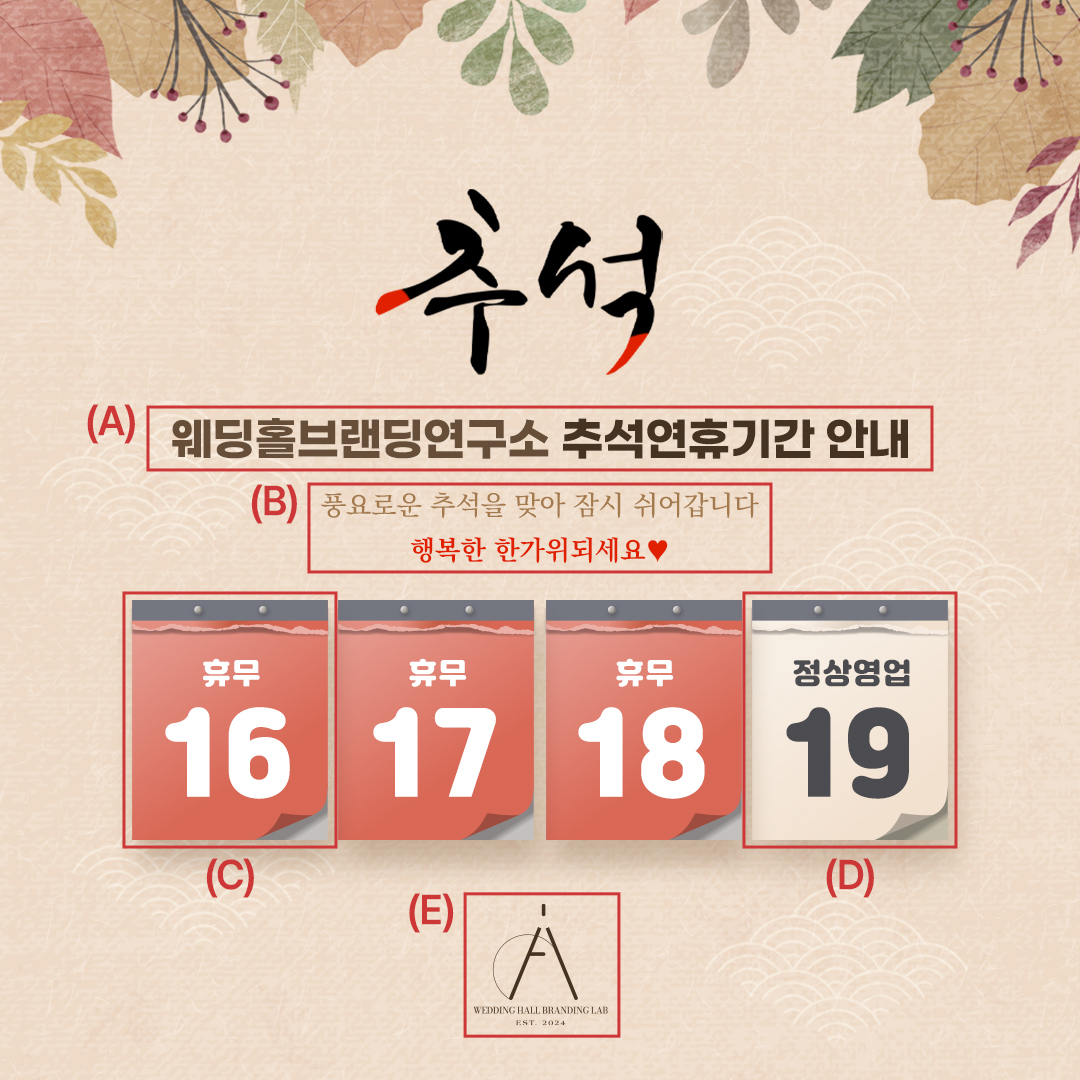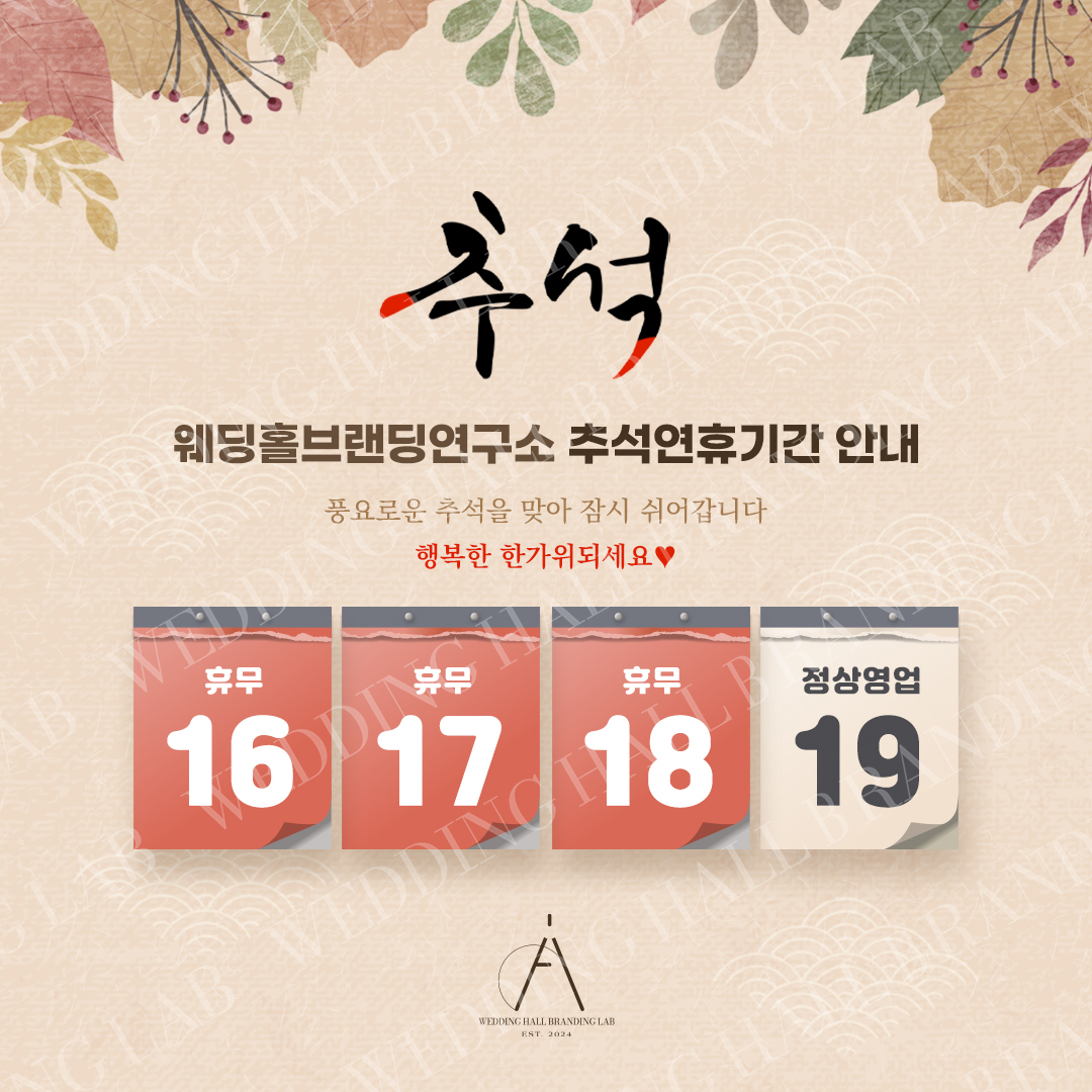 ex) 웨딩홀브랜딩연구소 추석연휴기간 안내