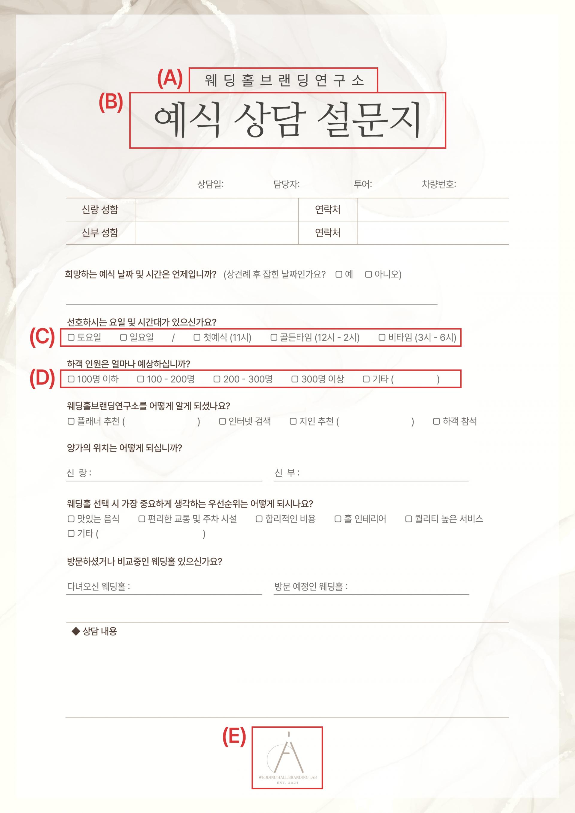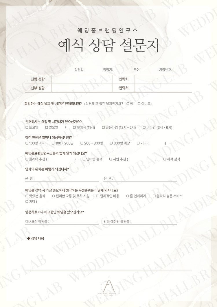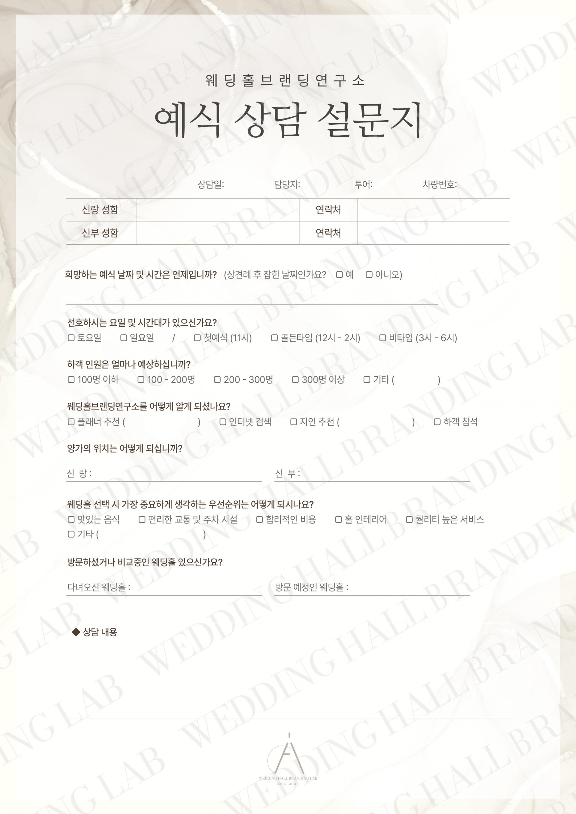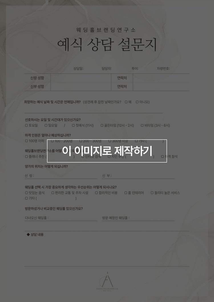 이 디자인은 차분하고 세련된 분위기를 자아내는 상담 설문지로,