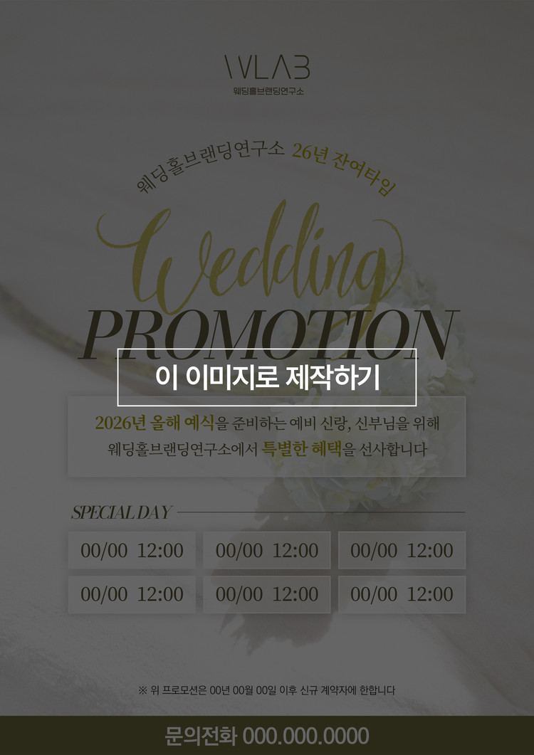 전체적으로 이 디자인은 담백하지만 감성적인 톤으로, 웨딩홀만의 순수하고 우아한 매력을 전하고 있습니다.