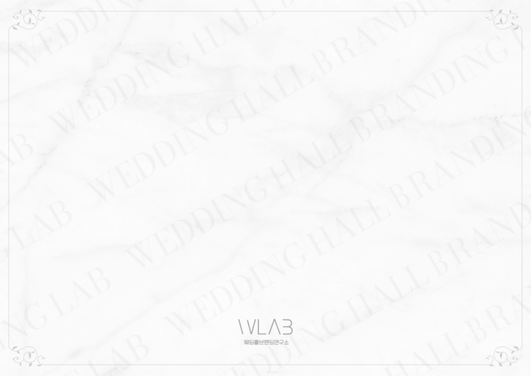 대리석 질감의 배경은 고급스러운 웨딩홀의 분위기를 은유적으로 드러내며, 심플한 선과 모서리 장식은 절제된 아름다움을 더해줍니다.