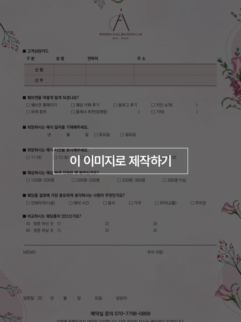핑크색 꽃(플로럴 장식) 우아한 무드의 예식 상담지