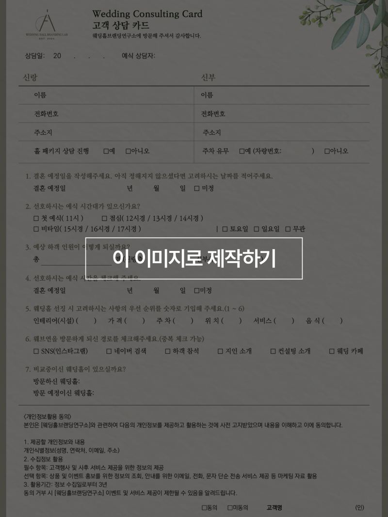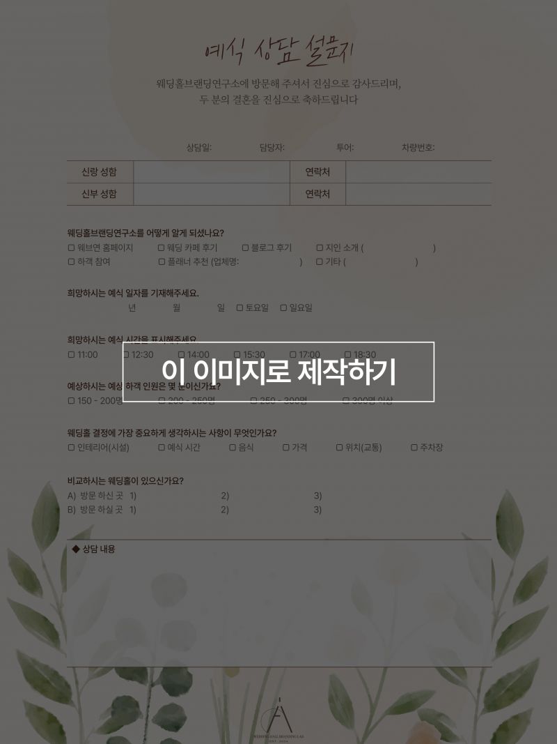 자연의 잎사귀 드로잉 예식 상담지/설문지