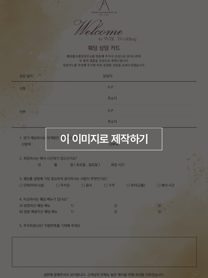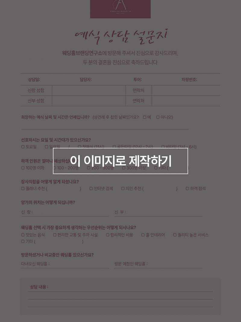 모던한 느낌의 깔끔한 배경 예식 상담지